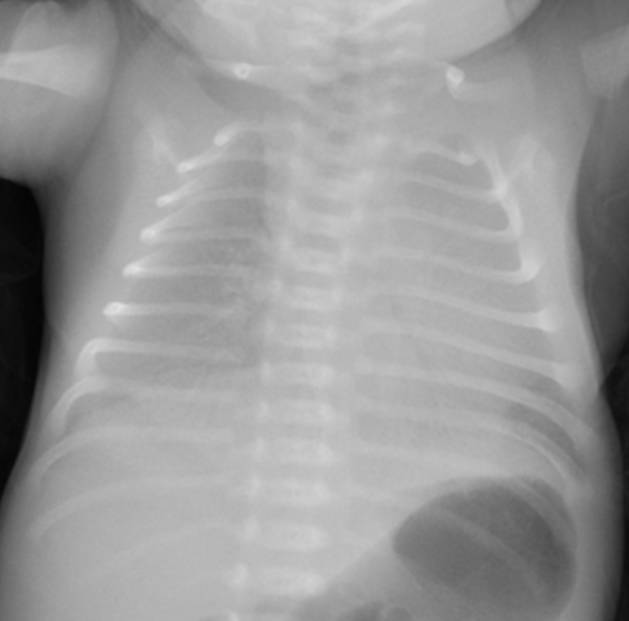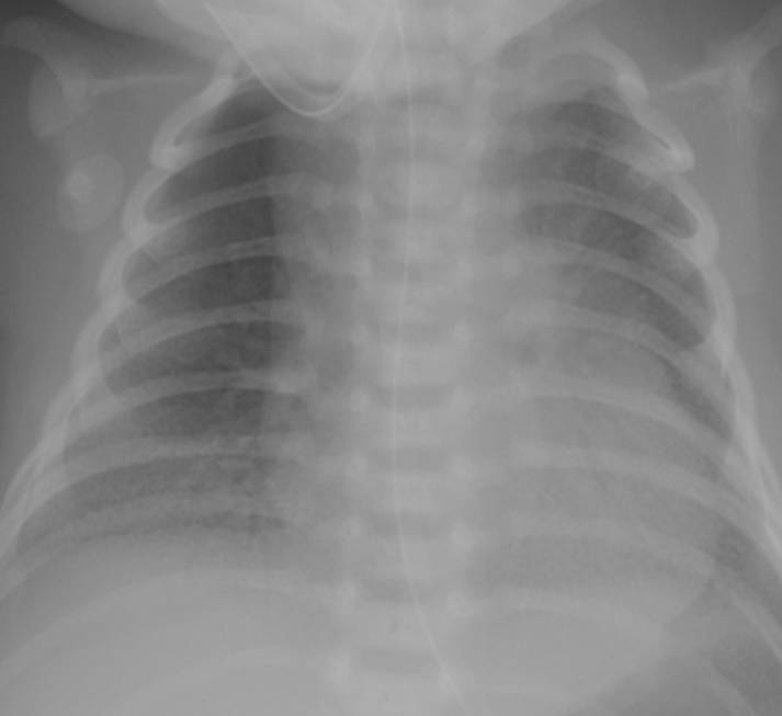 多見于早產(chǎn)兒,生后6小時內(nèi)出現(xiàn)進行性呼吸困難,表現(xiàn)為呼吸急促(>60次/分),呻吟,三凹征陽性,發(fā)紺,呼吸暫停等,需馬上使用肺表面活性物質(zhì),呼吸支持(CPAP或機械輔助通氣)。