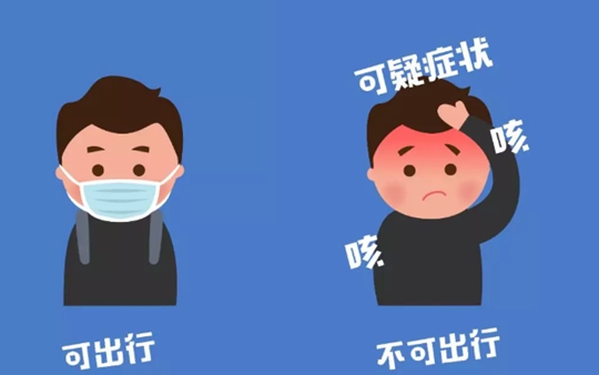 1、出行前,若無可疑癥狀(發(fā)熱、咳嗽、咽痛、胸悶、呼吸困難、乏力、惡心嘔吐、腹瀉、結(jié)膜炎、肌肉酸痛等),可正常出行。