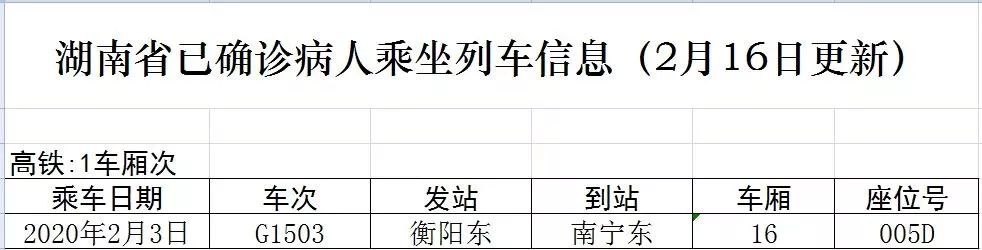 附件:湖南省已確診病人乘坐列車(chē)及信息(2月16日更新)