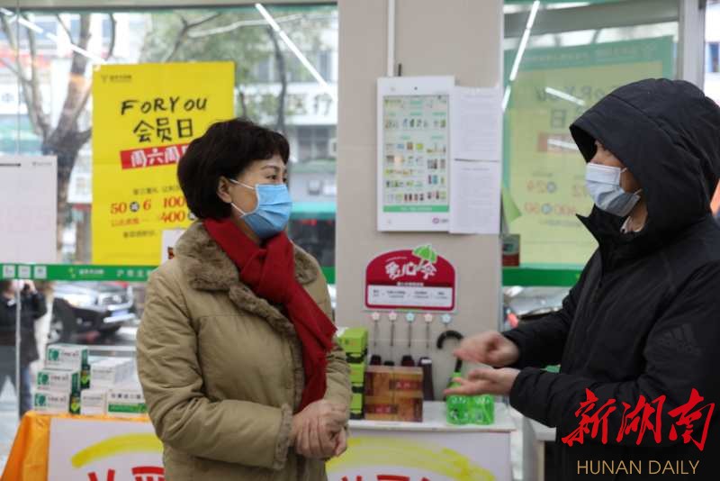 2月15日上午,省委常委、省委統(tǒng)戰(zhàn)部部長黃蘭香在常德市武陵區(qū),檢查口罩等防護物資市場供應(yīng)情況。 李白 攝