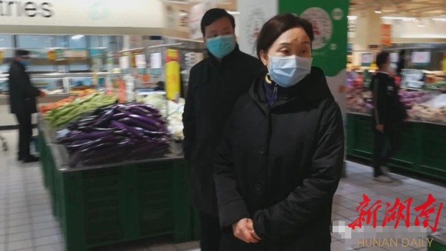 2月15日,省政協(xié)主席李微微在邵陽步步高超市暗訪疫情防控工作。陳艷攝
