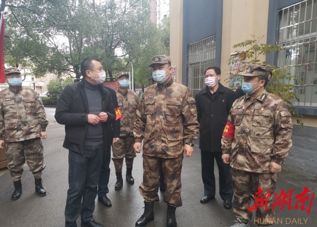 2月15日下午,省委常委、省軍區(qū)政治委員馮毅在鶴城區(qū)迎豐街道華峰社區(qū)督導(dǎo)檢查疫情防控工作。 湖南日報記者 施泉江 攝