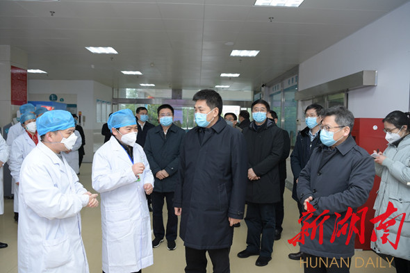 2月15日,張宏森在永州市中心醫(yī)院冷水灘院區(qū)調(diào)研救治工作并慰問醫(yī)護人員。永州日報記者 何繼鳳 攝。