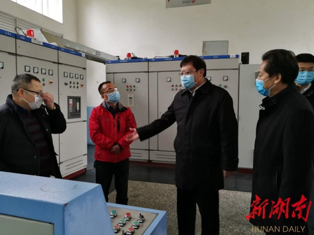 2月15日,姚來英在張家界市自來水公司督導(dǎo)檢查疫情防控和復(fù)工復(fù)產(chǎn)工作。湖南日報記者 寧奎 攝